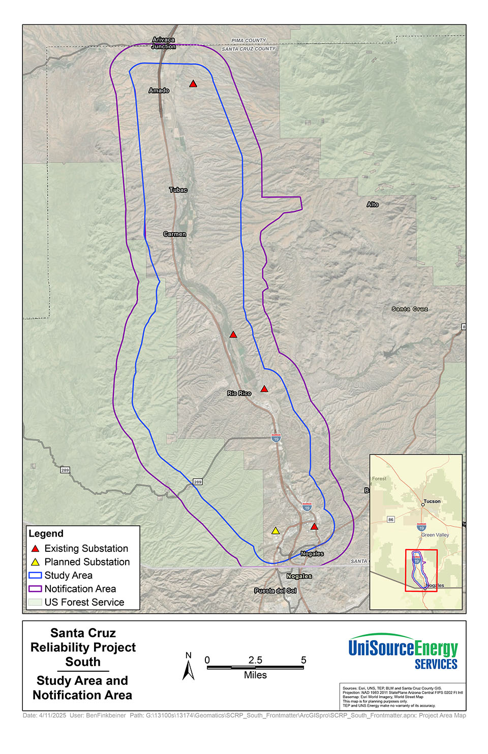 Santa Cruz Reliability (SCR) Project South is designed to strengthen the local energy grid by building a new 138 kilovolt (kV) transmission line to interconnect its Kantor Substation in Amado to the Valencia Substation in Nogales through the planned Gateway Substation west of Interstate 19 and West Mariposa Road.