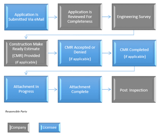 UniSource has provided the requirements, specifications and standards for pole attachment requests in its Pole Attachment Guidelines. Below is a high-level summary of the standard pole attachment process. Please refer to the Pole Attachment Guidelines for all requirements.